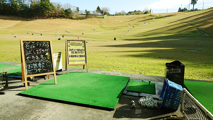 クラブハウス出入り口の試打専用打席はゴルフパートナー名取店店内の新品以外のクラブはすべて試打することが出来ます。もちろんボール代は名取ゴルフガーデンが負担しますので無料です。