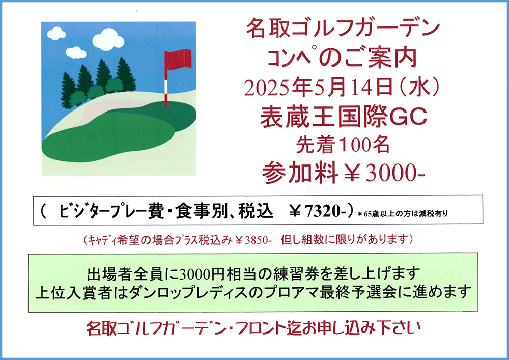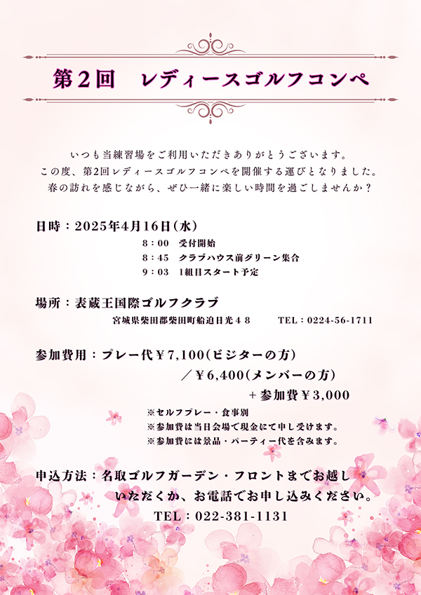名取ゴルフガーデン 022-384-1131 フロントまで |