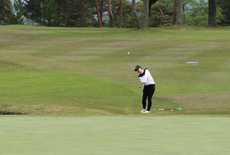 全体で第2位に輝いた佐々木愛さんはアウトコースで2バーディー、1ボギーの35、インコースで1バーディー、1ボギーの36、計71、HDCP+1.2、NET72.2と好スコアをマーク。「ショットがとても良かった。天気も素晴らしく楽しくプレーできました」と笑顔を見せます。大学入学と共にゴルフ部に入部しゴルフに夢中になり、社会人1年生の現在もライフワークの一環として楽しんでいる。この日は自己ベストを更新。女性のベストグロスも獲得しました。