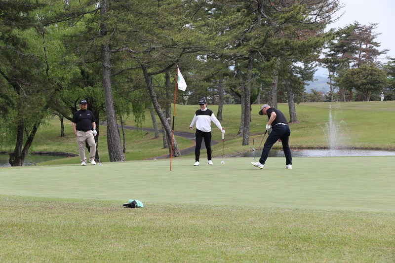 定刻の9時3分、アウト、インに分かれて一斉にスタート。競技方法は18ホールストロークプレー(Wペリア方式)で行われ、日々の研鑽の成果を存分に発揮されました。