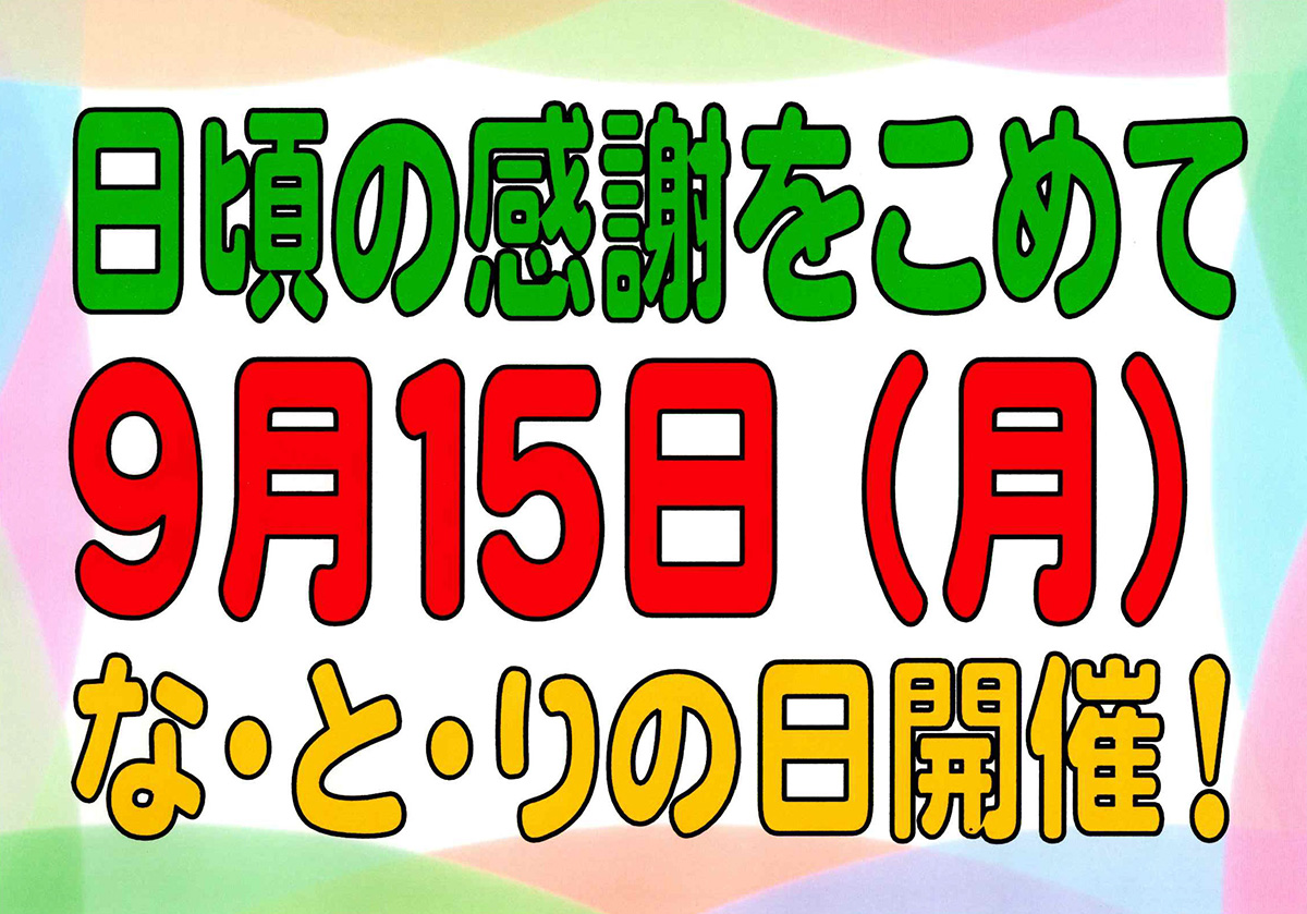 | 5 | 6 | 7 なとりの日 シニアデー |