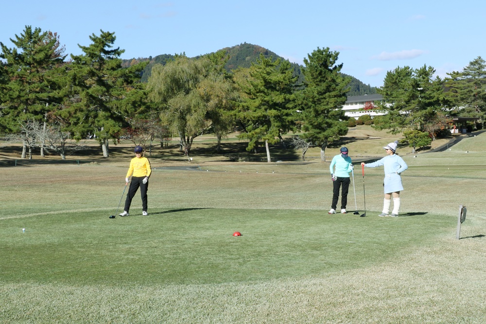 前日までは季節風が吹き、晩秋らしい肌寒さが続いておりましたが、当日は一転して穏やかな陽気に恵まれ、風もなく日差しが暖かいゴルフ日和。参加の皆さんの表情も自然とほころびました。