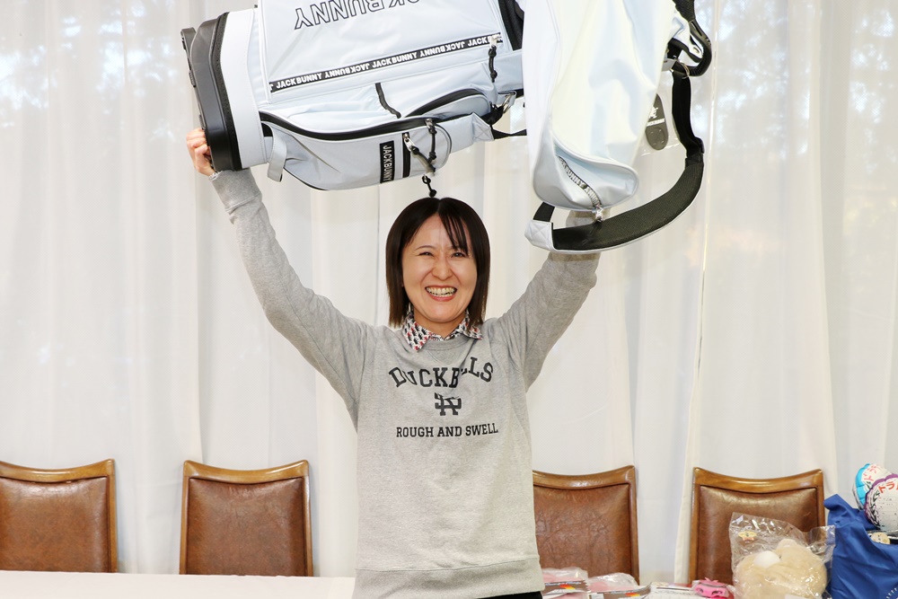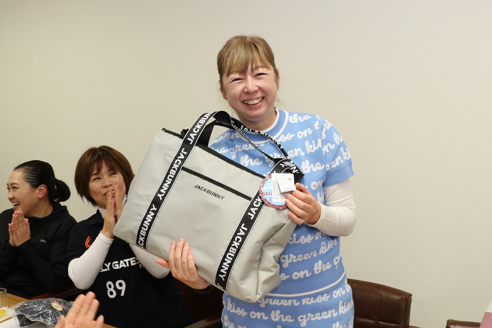 ベストグロス賞に輝いた大学ゴルフ部出身の佐々木愛さんはグロス76(37/39)をマーク。ネット72.4で6位に入りました。「バーディーは2つありましたが、ダブルボギーも出てしまって…」と反省の言葉もありつつ受賞の喜びを噛みしめてました。